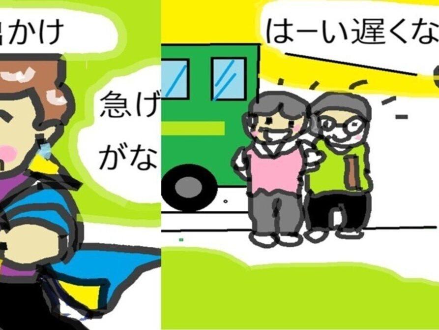 【エコ914|ほのぼの4コマ漫画|遊ぶ】 4コマ漫画🚌ばあばあのおしゃれ?
