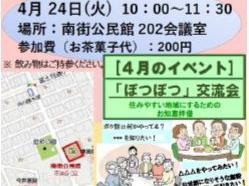 【暮らしを守る | 考えよう街創り】 地域交流の場ぽつぽつ「04月イベント;住みやすい地域にするためのお知恵拝借」;主催(N・S・Cぽつぽつ隊)の開催案内