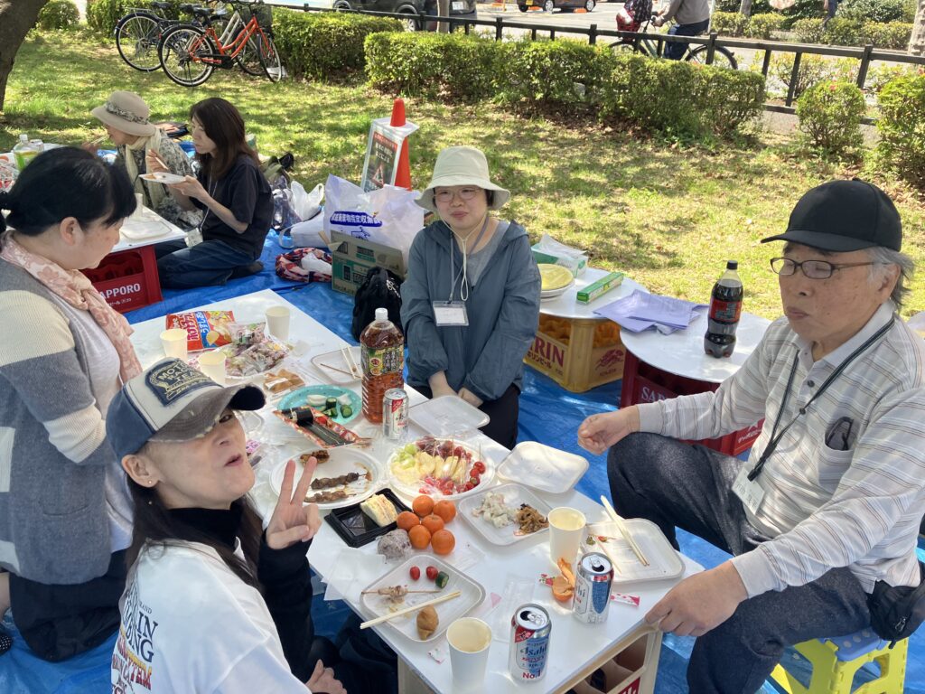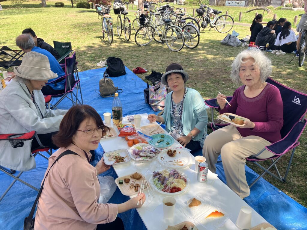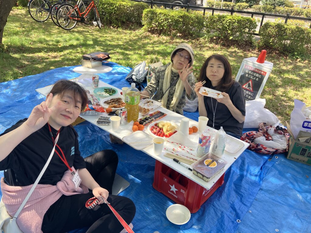にほんご友の会では、4/11(土)11:00~13:00に東大和南公園(旧日立航空機株式会社変電所付近)でお花見会を開催しました。2週間降雨で延期された当日は朝から晴天に恵まれて気温は25℃、最高のお花見日和となりました。