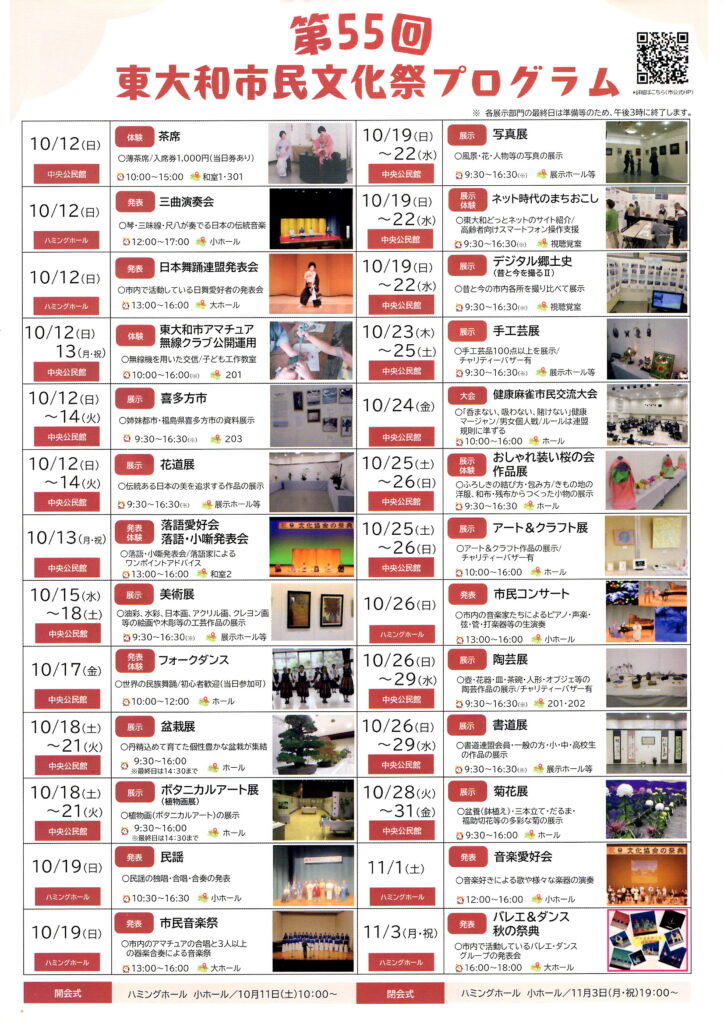 2025年10月7日 / 最終更新日時 : 2025年10月7日 菊花仙人 イベント 東大和市民文化祭 第55回東大和市民文化祭 ~育もう 未来へ続く東大和の文化~ 日時:10月11日(土)~11月3日(月・祝) 会場:中央公民館 ハミングホール 東大和市民文化祭実行委員会 EPSON MFP image EPSON MFP image Follow me! 菊花仙人共有:Tweetいいね:いいね 読み込み中... 関連 FacebooktwitterHatenaPocket