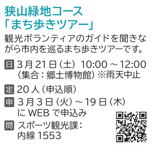 「狭山緑地コース」まち歩きのお知らせ