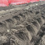 曇り空、風時々強し。金曜の朝8時半、第2回農園講習に向かう。先週開講した体験農園・やすじぃの農園、この日の作業は①ジャガイモの定植、他には次回以降の講習に備えた②トマト列・ナス列の畝づくり。作業内容の説明を聴き、園主の模範実技をみて作業を開始。北の境界杭から巻き尺で測り、割り箸を立て、ジャガイモ用の溝を2本掘る、深さは10センチ。30センチ間隔で、8個ずつの品種、北あかりとメークインの種芋を定植。種芋に軽く土を被せ、株間に肥料を加えて定植作業完了。区画の南側にトマト列(70㎝幅)・ナス列(60cm幅)に仕立てた畝には黒マルチを被せる。少しだけ汗をかいて、第2回講習の全てを終えた。ジャガイモの定 ... 続きを読む