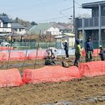 二十四節気の暦では啓蟄(けいちつ)を迎え、そして金曜日(6日)、今年度の体験農園(やすじぃの農園)がいよいよ開講。25~26人が集まった。風もほどほど、ビニールハウスの外で園主の挨拶、そして春作の、この日の作業内容の説明へと続いた。区画の境界杭の麻紐張り、そして今年も葉物の畝づくりからスタート。葉物の畝は、透明4条マルチを被せ、その内の3条分を使う。北側から横に16穴にカブ(x3粒)を。ホウレンソウ(x8)、コマツナ(x8)の種と続き、ルッコラとワサビナも少し、種を蒔く。赤い寒冷紗で覆って葉物の作業を終了。残りはサトイモの畝づくり、こちらは畝幅60センチ、畝高10センチに黒マルチを被せ、本日は ... 続きを読む