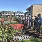 久々に天気もよく、空は抜けるように青い農園日和!昨日(17日)の農園講習第15回には約20名ほどが参加。ブログ記事( ナスの撤収と葉物 秋作が佳境 )に続く農園報告。先週のナス列撤去の後、葉物列には15センチ高の畝をつくってあった。穴あき透明マルチ4列16穴のシートを敷いて、西から順に、コマツナ(x9)、ミズナ(x3)、ルッコラ(x2)、わさび菜(x2)の種をまく。秋作の最後の種まきとなった。軽く土を被せて完成。他に虫にやられたカリフラワー(x1)、シュンギク(x1)の苗の植え替えも行う。不揃いのニンジンの収穫やネギを初収穫、それに空芯菜の葉を茎ごと収穫。第15回講習風景251017 ... 続きを読む